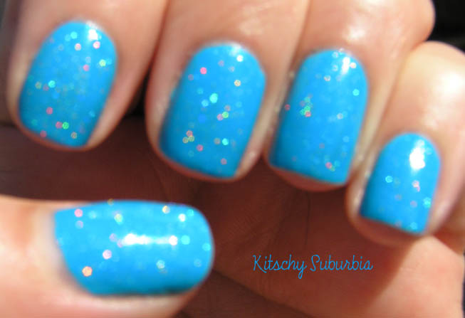 LOL @ "without making it look like a glitter fairy puked on my fingers." XD I like the subtlety of the glitter, though personally I'm a fan of the blue by itself :D